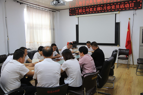 5月20日,工程公司黨支部黨員活動日在公司四樓小會議室召開,市直工委書記劉亞民、主任邱春峰以及水務局黨總支王素華同志列席會議,會議由工程公司黨支部書記尤麗剛同志主持,黨支部10名黨員參與。